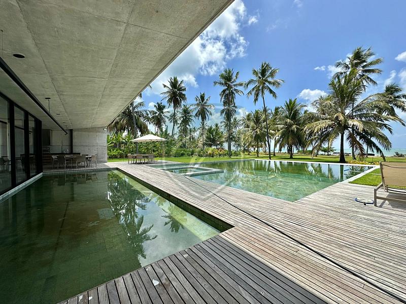 Viva o privilégio de segunda moradia em uma das praias mais paradisíacas do Brasil. Esta mansão à beira-mar fica na Reserva Pituba, um condomínio exclusivo com infraestrutura de altíssimo nível ao sul de Alagoas, em Coruripe.